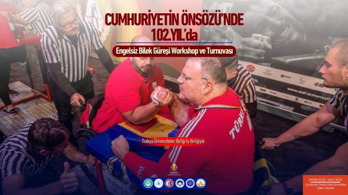 Cumhuriyetimizin 102. yılı kutlamaları kapsamında, Trakya Üniversiteler Birliği iş birliğiyle düzenlenen “Engelsiz Bilek Güreşi Workshop ve Turnuvası” için tüm sporseverleri ve öğrencilerimizi davet ediyoruz!