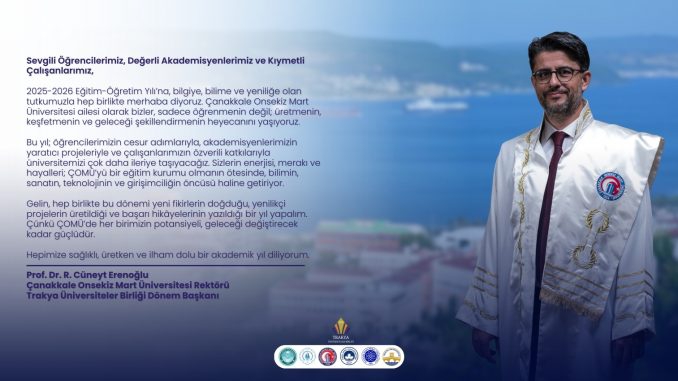 2025-2026 Eğitim-Öğretim Yılı’na, bilgiye, bilime ve yeniliğe olan tutkumuzla hep birlikte merhaba diyoruz. Çanakkale Onsekiz Mart Üniversitesi ailesi olarak bizler, sadece öğrenmenin değil; üretmenin, keşfetmenin ve geleceği şekillendirmenin heyecanını yaşıyoruz.