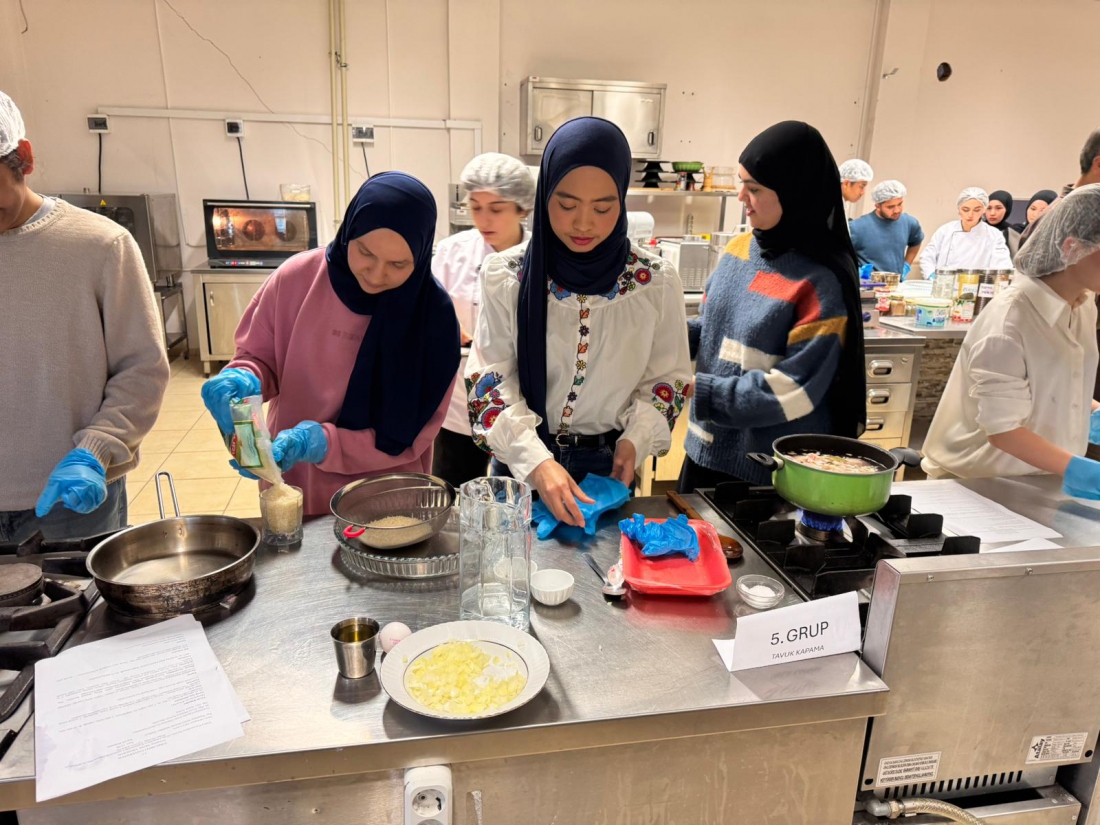 Kırklareli Üniversitesi Uluslararası öğrencilerinin yoğun ilgi gösterdiği etkinlikte, Pınarhisar Meslek Yüksekokulu öğretim elemanları Dr. Öğr. Üyesi Mehmet Selman Bayındır ve Öğr. Gör. Aykut Aybaş tarafından bölge mutfağının karakteristik özellikleri, geleneksel yemek kültürü ve yöresel lezzetlerin hazırlanış süreçleri uygulamalı olarak tanıtıldı.